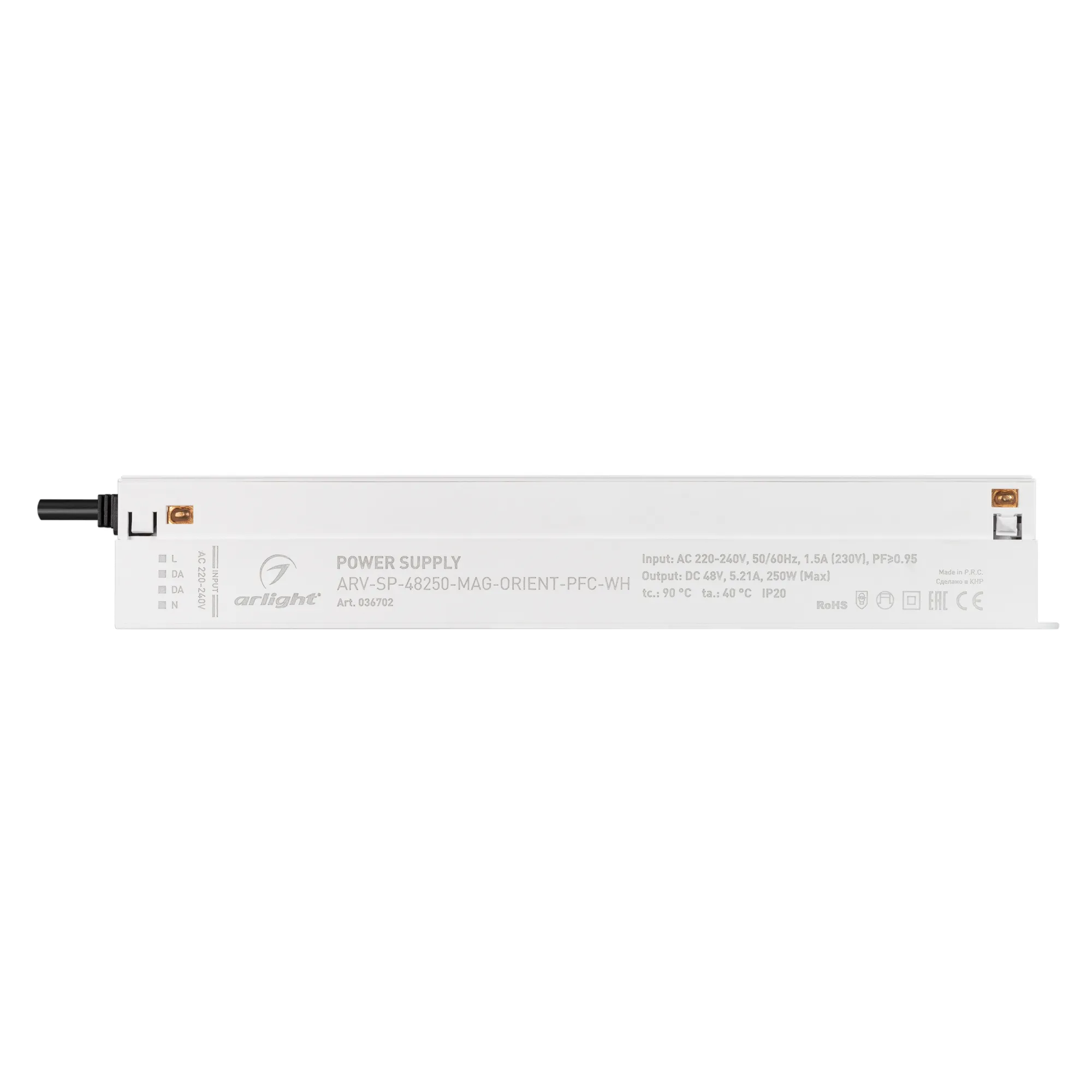 В магазине Arled Market Вы можете купить "Блок питания ARV-SP-48250-MAG-ORIENT-PFC-WH (48V, 5.21A, 250W) (Arlight, IP20 Пластик, 5 лет)"