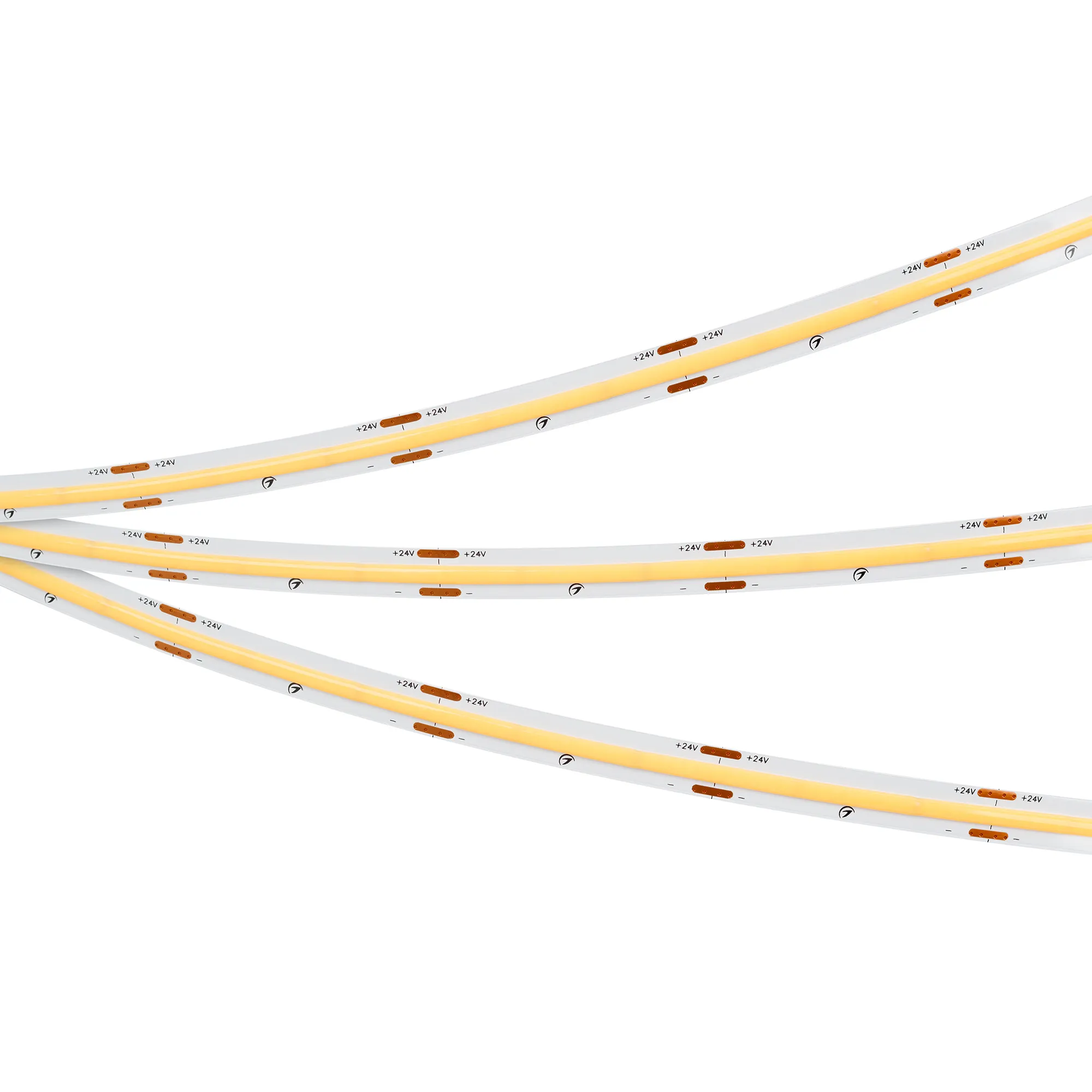 Светодиодная лента сплошного свечения COB серии X420 Long Run. Светодиоды CSP, 420 шт/м, белая плата шириной 10 мм, скотч 3M. Цвет ТЕПЛЫЙ 2700K, индекс цветопередачи CRI>90, угол 170°. Питание 24 В, мощность 4.8 Вт/м (72 Вт на 15 м). Размеры 15000х10х1.8 мм. Мин. отрезок 50 мм. Цена за 1 м. Длина подключения с одной стороны - 15 м.