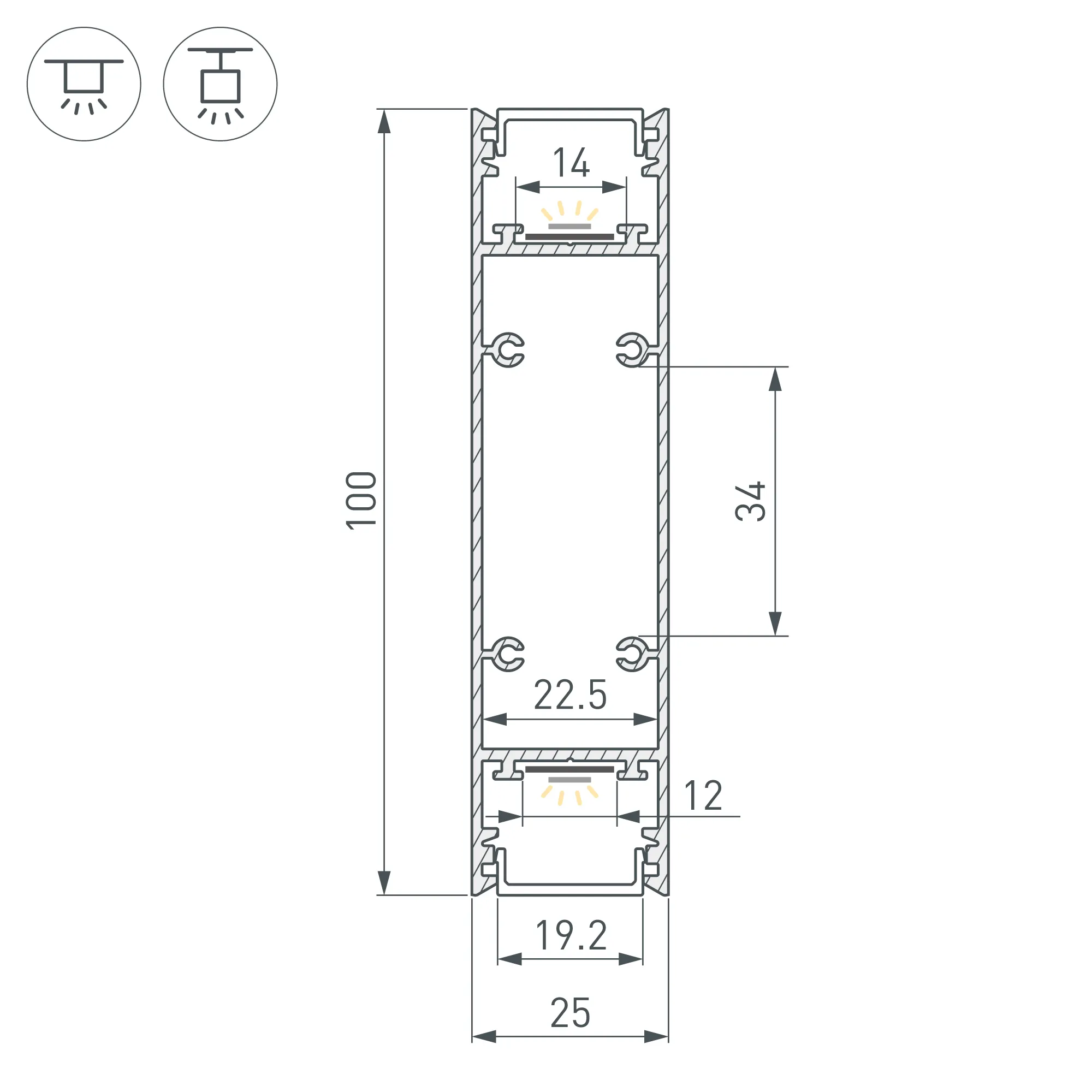 Под заказ от 100 м.Алюминиевый профиль для светодиодных лент и линеек, свечение вверх и вниз. Цвет - светло-синий RAL5012 (порошковая окраска). Габаритные размеры (L×W×H): 2500x25x100 мм. Ширина площадки для ленты 12 мм. Экраны, заглушки и другие аксессуары приобретаются отдельно. Цена за 1 метр.